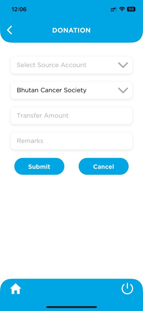 Those who have bank accounts with BOB and have mBOB App, you may directly donate via Fund Transfers >> Donations >> Bhutan Cancer Society